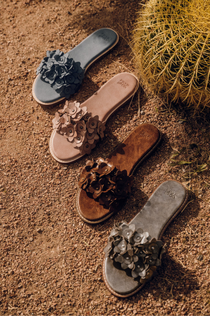 With handcrafted flower details, the Bucky Flower Slide brings a modern edge to a timeless design. A cushioned insole ensures move-with-you comfort, while the lightweight upper offers durability. Pair these slides with dresses or tailored shorts for versatile weekday-to-weekend wear.