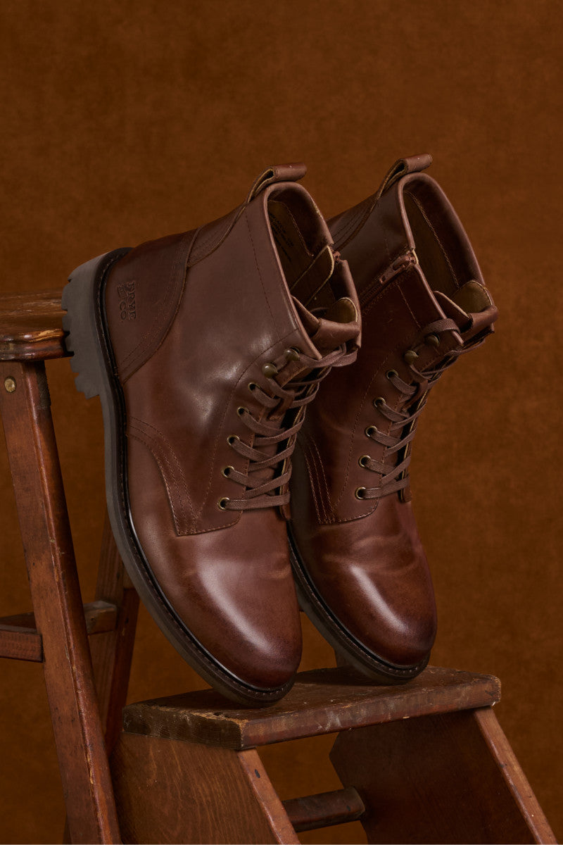 The Dunn Lace Up blends rugged yet refined style with all-day wearability. Crafted from durable leather and designed with thoughtful details, it features a cushioned insole for move-with-you comfort. Its ankle-height design, side zipper, and sturdy outsole offer a polished yet relaxed fit. A versatile staple for weekday to weekend wear.