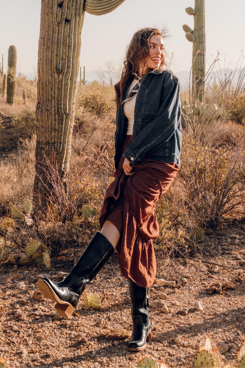 The icon-inspired Miranda 14 is the boot you'll reach for again and again. Made from top-quality materials, these tall boots with a block heel offer out of the box comfort. Whether paired with wide-leg jeans or a boho midi dress, they bring a touch of effortless cool to any outfit - a true wardrobe staple.
