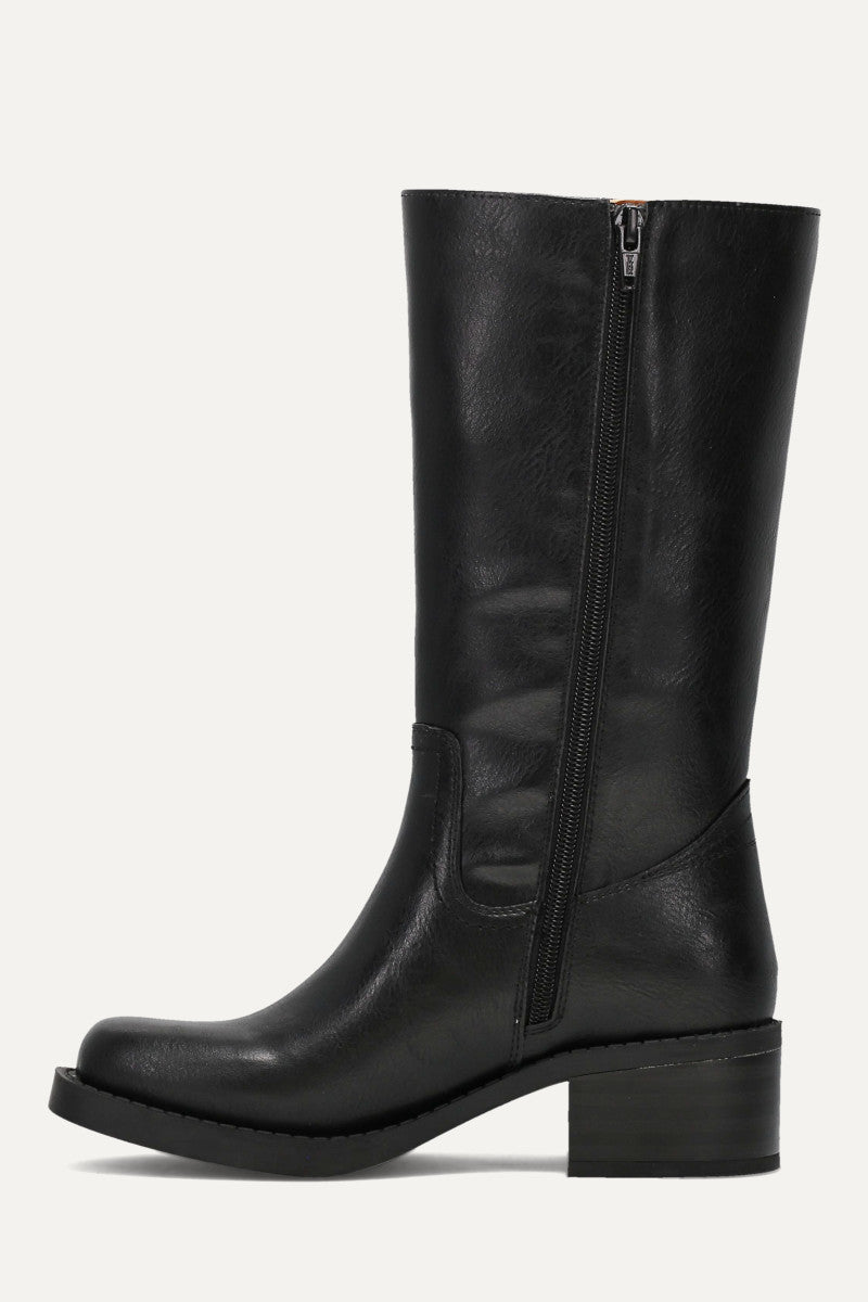 The Miranda 14 riding boot brings timeless charm to every adventure. Crafted from durable vegan materials, these boots deliver all-day comfort right out of the box thanks to a soft cushioned insole and a flexible sole. With a stylish square toe and easy side zipper, these boots do it all - just add jeans, leggings, or a favorite dress for any occasion.