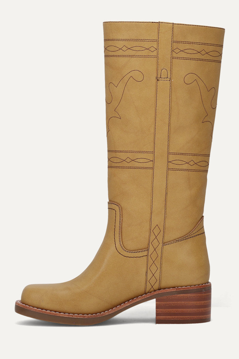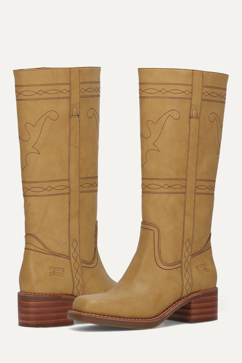 The Miranda Bridle Stitch boot brings the vintage vibes. Made from soft, durable vegan leather, it showcases authentic stitching and an embossed Frye and Co. logo—delivering a heritage-inspired look in a best-selling silhouette. A flexible sole and easy pull-on design offer all-day wearability. Style it with denim, flowy dresses, or layered looks for effortless edge.
